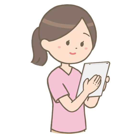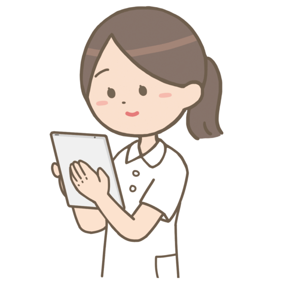 看護師1人につきタブレット端末が支給されており、タブレットで記録、連絡、情報提供書の作成ができるので、事務所に戻ってから記録を作成する、ということもありません。場所を選ばずに仕事ができます。(スマホの持ち帰りは基本禁止です)