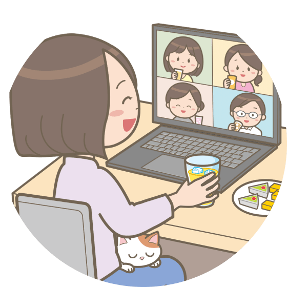 チャットやビデオ通話などで