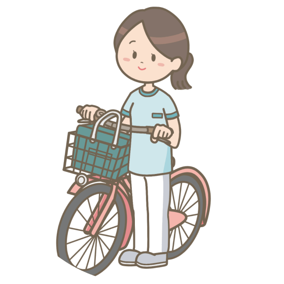 【社会保険】 ・厚生年金 ・健康保険 ・雇用保険 ・労災保険 【スマホ貸与】 看護の記録や情報の共有は全て 会社から貸与されるスマホで行っていただきます。 【高性能電動アシスト自転車】 会社から貸与される高性能電動アシスト自転車で 坂道もラクにのぼることができます。 また、電車で訪問することもございます。 【その他】 ・服装自由 ・定期健康診断あり ・産休・育休制度あり ・通勤レス ※希望があれば職員の住宅付近でのサテライト開設検討します |